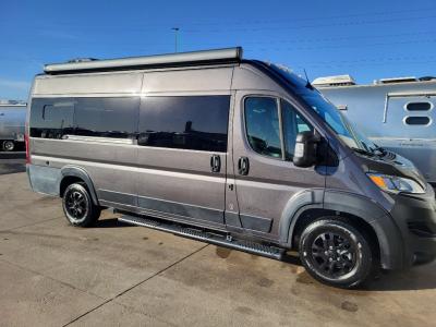 Sleeps 2 Length 20 ft 11 in Ext Width 8 ft 3 in Ext Height 9 ft 5 in Int Height 6 ft 2 in Interior Color Moonstone Grey, Admiral Navy Exterior Color Bright Silver Metallic, Granite Crystal Metallic GVWR 9350 lbs Dry Weight 7661 lbs Cargo Capacity 1689 lbs Fresh Water Capacity 28 gals Grey Water Capacity 19 gals Black Water Capacity 12 gals Generator 2.8 kW Gasoline with Remote Start Fuel Type Gasoline Engine 3.6L Pentastar V6 24V VVT Chassis RAM ProMaster 3500 Horsepower 276 hp Fuel Capacity 24 gals Wheelbase 159 in Torque 250 ft-lb Refrigerator Type 12 Volt w/ Marker Board Front Refrigerator Size 3.2 cu ft Cooktop Burners 1 Number of Awnings 1 Water Heater Type Gas Fired Hydronic AC BTU 13500 btu Awning Info 13' Manual Awning with Legs and Lighting Gross Combined Weight 12000 lbs Shower Type Wet/Bath Shower Electrical Service 30 amp